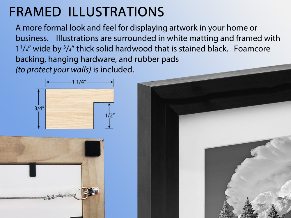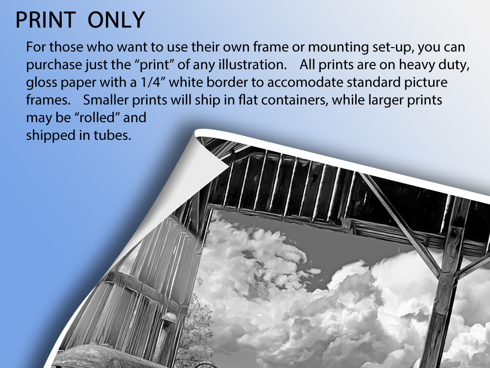 To purchase this illustration, first select a size . . . then select a style and quantity. If you want a size bigger than 24" x 36". . . please contact me using the email icon at the bottom of this page. Explanation of styles - as well as various Room Views - are shown below the purchase options. Hover over (or tap on) the image to zoom in. |
